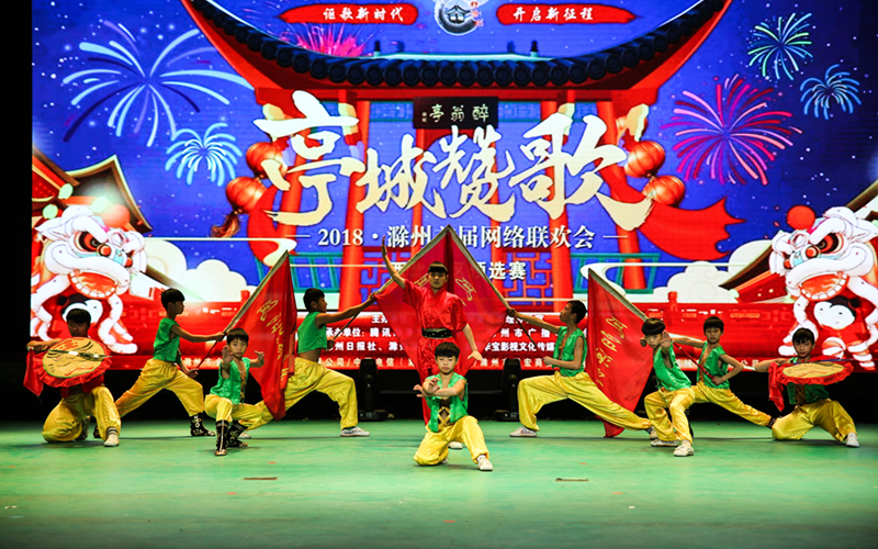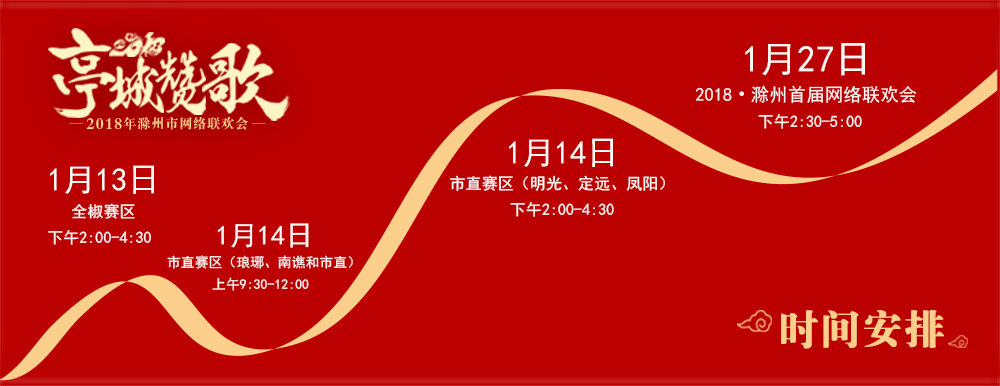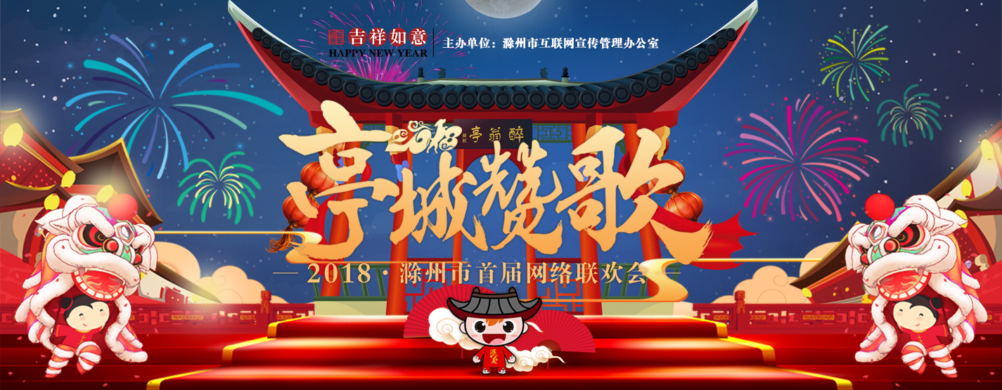 欢天喜地,传承滁城文化;欢声笑语,共享阖家幸福,又是一年岁末时。“亭城赞歌”—2018•滁州首届网络联欢会即将拉开帷幕!滁州首届网络联欢会是由滁州市互联网宣传管理办公室主办,腾讯政务旅游安徽站、滁州市广播电视台、滁州日报社、滁州演艺集团、安徽华宝影视文化传媒有限公司承办的滁州全民大联欢活动,旨在通过聚合滁州市各界民间艺人及网络达人,举办一场属于滁州人民自己的网络春节联欢晚会,集中展现滁州各地风景、风俗以及当代滁州人民的精神风貌,对外展示滁州的发展成果,形成特色“滁州品牌”。